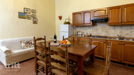 Der Agriturismo besteht aus zwei Teilen, die etwa 1,5 km voneinander entfernt sind. In einem Teil finden Sie Hotelzimmer, ein Restaurant mit Terrasse, eine Lounge, eine Bar, ein Außenbad, einen Tennisplatz und ein kleines Fußballfeld. Im anderen Teil befinden sich die Wohnungen sowie ein Hallenbad mit Jacuzzi, eine Sauna, ein Dampfbad, ein Schönheitszentrum, eine Reitschule und einige Spielgeräte für Kinder. Fahrräder können vor Ort gemietet werden. Das Anwesen ist außerdem ein Biobetrieb mit mehr als 700 Hektar, auf dem Getreide, Hülsenfrüchte und Dinkel angebaut werden. Gäste können an geführten Touren teilnehmen, die Verkostungen, Kochworkshops, Weinverkostungen, Reitkurse und organisierte Fahrradtouren umfassen. Das beheizte Hallenbad mit mildem Salzgehalt ist in kühleren Zeiten angenehm. Wer draußen schwimmen möchte, kann zum Schwimmbad im Hauptgebäude gehen; Dieser ist mit dem Auto oder zu Fuß erreichbar. Die Wohnung selbst verfügt über ein Wohnzimmer mit Sitzbereich und Kochnische, zwei Schlafzimmer (eines mit Doppelbett, eines mit zwei Einzelbetten) und ein Badezimmer mit Dusche. Es gibt keine private Terrasse, aber im Garten gibt es Sitzgelegenheiten, die von Gästen genutzt werden können.