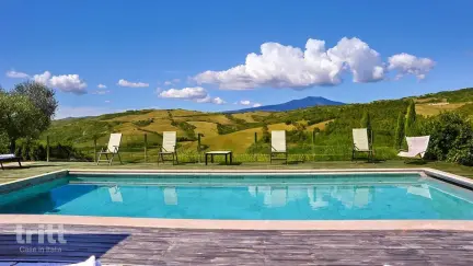 Die Villa befindet sich im Val d’Orcia, einer der schönsten Regionen der Toskana und Teil der UNESCO-Welterbeliste. In der Gegend befinden sich charakteristische Dörfer wie Pienza, Monticchiello, Montalcino und Montepulciano, die für ihre Architektur, Kathedralen und Weinkultur bekannt sind. Siena, mit der berühmten Piazza del Campo, ist ebenfalls leicht erreichbar. Natur- und Bewegungsliebhaber können wunderschöne Wander- und Radtouren entlang alter Wallfahrtswege wie der Via Francigena unternehmen. Zur Entspannung werden die heißen Quellen Bagni San Filippo und Bagno Vignoni sehr empfohlen. Die Region ist auch für ihre Gastronomie bekannt, mit Produkten wie Pecorino aus Pienza sowie den Weinen aus Montalcino und Montepulciano. Ein Aufenthalt hier ist die perfekte Balance zwischen Kultur, Natur und der toskanischen Lebenskunst.