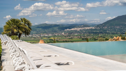 Das Anwesen produziert Olivenöl, Honig, Wein und Haselnüsse, und Sie werden verschiedene Tiere wie Ziegen, Pfauen und ein Pony treffen, das gerne umherstreift. Weiter oben auf dem Hügel befindet sich das zentrale Landhaus mit Restaurant, Schwimmbad, Sportplatz und Hotelzimmern. Die Wohnungen befinden sich niedriger, in einem Grünbereich etwa 600 m entfernt, am Eingang des Grundstücks. Die Wohnung für 4 Personen verfügt über ein Wohnzimmer mit Kochnische, zwei Schlafzimmer, zwei Badezimmer (eines mit Jacuzzi) und eine Terrasse mit Sitzgelegenheiten, manchmal mit Blick auf Assisi. Alle Wohnungen sind mit Moskitonetzen und Klimaanlage ausgestattet. Verkostungen, Kochworkshops, Trüffeltouren und E-Bike-Aktivitäten können auf Anfrage organisiert werden.
