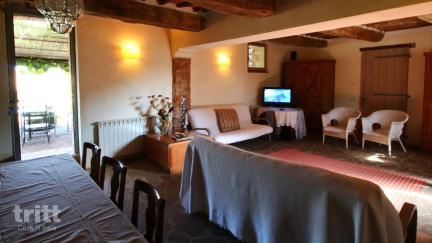 Dieses Agriturismo besteht aus mehreren authentischen Wohnungen, die schlicht, aber ansprechend möbliert sind. Die Wohnung für vier Personen verfügt über ein gemütliches Wohnzimmer mit Kamin und Schlafsofa, eine Kochnische für einfache Mahlzeiten, ein separates Schlafzimmer und ein ordentliches Badezimmer. Draußen, direkt am Eingang, befindet sich ein überdachter privater Bereich mit Sitzgelegenheiten und Blick über das Tal und das Becken. Auf dem Gelände gibt es ein geräumiges Schwimmbad mit Sonnenliege, einem Grillbereich und verschiedenen Gemeinschaftsbereichen, in denen sich die Gäste treffen. Der persönliche Ansatz und die herzliche Willkommensaufnahme sorgen dafür, dass Sie sich hier schnell wie zu Hause fühlen – egal, ob Sie mit Familie, Partner oder Freunden reisen.