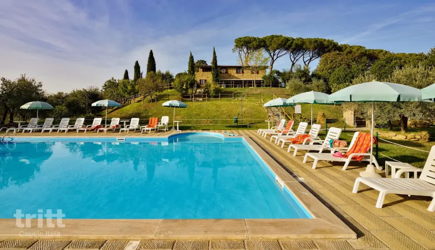 Die Lage an der Grenze zwischen Umbrien und Toskana macht dies zu einer idealen Basis für vielfältige Reisen. Kurz entfernt liegt der Trasimeno-See, mit dem atmosphärischen Castiglione del Lago direkt am Wasser. Städte wie Montepulciano, Cortona und Città della Pieve sind ebenfalls leicht erreichbar. In unmittelbarer Umgebung wurden Wanderwege durch die hügelige Landschaft angelegt, wo man mit etwas Glück Wildtiere beobachten kann. Für diejenigen, die Kultur, Natur und Entspannung verbinden möchten, ist dies ein wunderbarer Ort, um Urlaub zu verbringen.